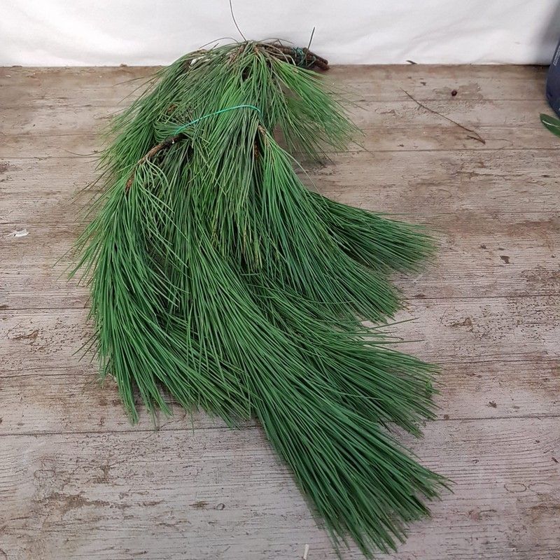 Ramo de agujas de pino frescas, ideal para decoraciones festivas y estacionales. Perfecto para adornar mesas, puertas o crear centros de mesa navideños. Hecho con materiales naturales, aporta un toque verde y aromático a tu hogar. Ideal para decoración de interiores y exteriores durante la temporada navideña o festiva.