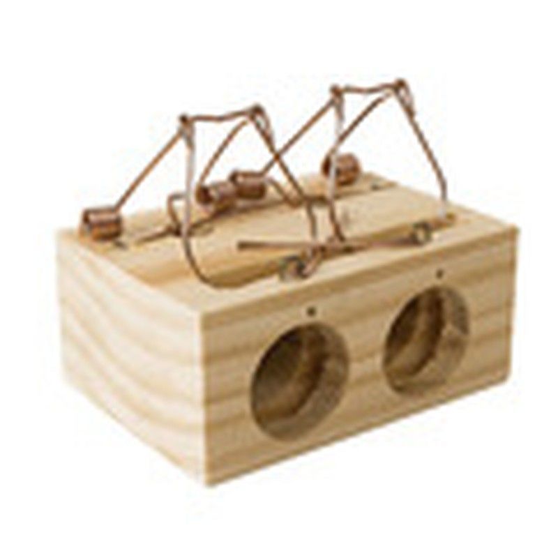 Ratonera de madera con dos entradas de 50 mm, ideal para controlar plagas de ratones en hogares y granjas. Fabricada con madera natural y mecanismo metálico resistente, ofrece una solución eficaz y reutilizable. Fácil de instalar y mantener, perfecta para espacios interiores y exteriores.