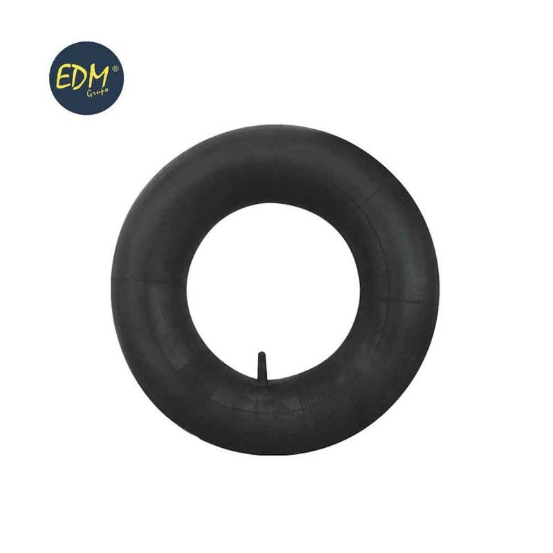 Recambio de cámara de rueda neumática EDM, fabricada en goma de alta calidad para uso en jardinería y herramientas de trabajo. Diseño circular con válvula integrada, ideal para reemplazar cámaras desgastadas en ruedas de carretillas, cortacésped o equipos de jardín. Fácil instalación y durabilidad comprobada.