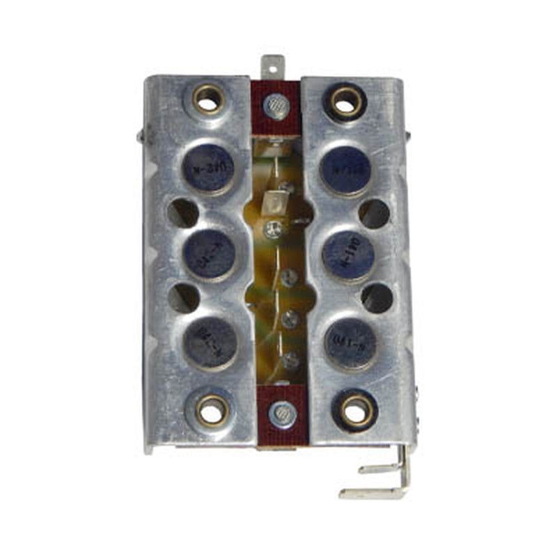 Rectificador para alternador modelo 139103, fabricado en metal resistente con componentes internos de alta calidad. Ideal para vehículos motorizados, ofrece una conversión eficiente de corriente alterna a continua. Diseño robusto con conectores metálicos y orificios de montaje para una instalación segura. Perfecto para reparaciones y mantenimiento