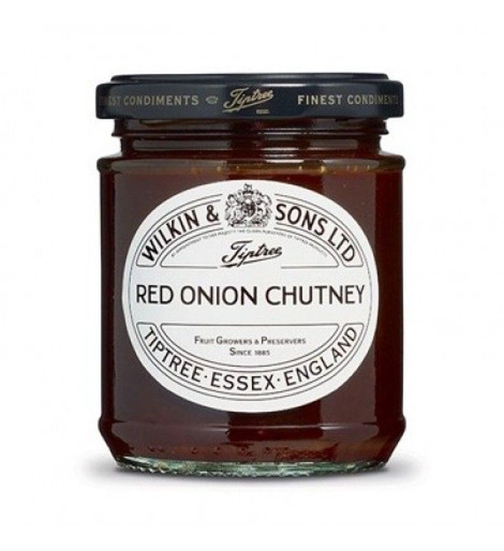 Chutney de cebolla roja Tiptree, elaborado con ingredientes de calidad en Essex, Inglaterra. Ideal para acompañar quesos, carnes o como condimento gourmet. Envasado en frasco de vidrio con etiqueta clásica y elegante. Perfecto para amantes de sabores auténticos y tradicionales.