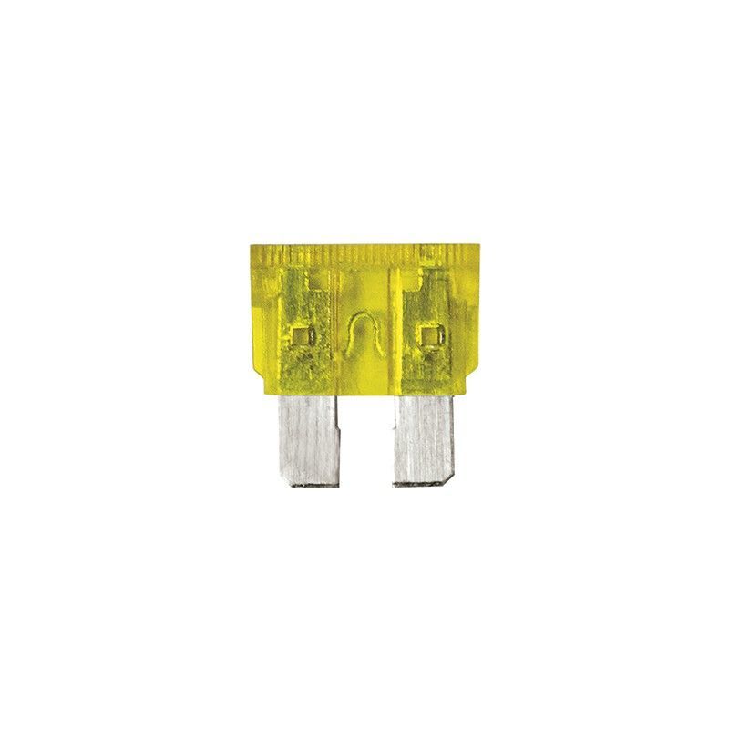 Fusible Little Fuse de 20 amperios, ideal para sistemas eléctricos de vehículos motorizados. Con cuerpo amarillo translúcido y terminales metálicos resistentes, garantiza protección eficaz contra sobrecargas. Fácil instalación en bloques de fusibles. Paquete de 100 unidades para mantenimiento y repuestos.