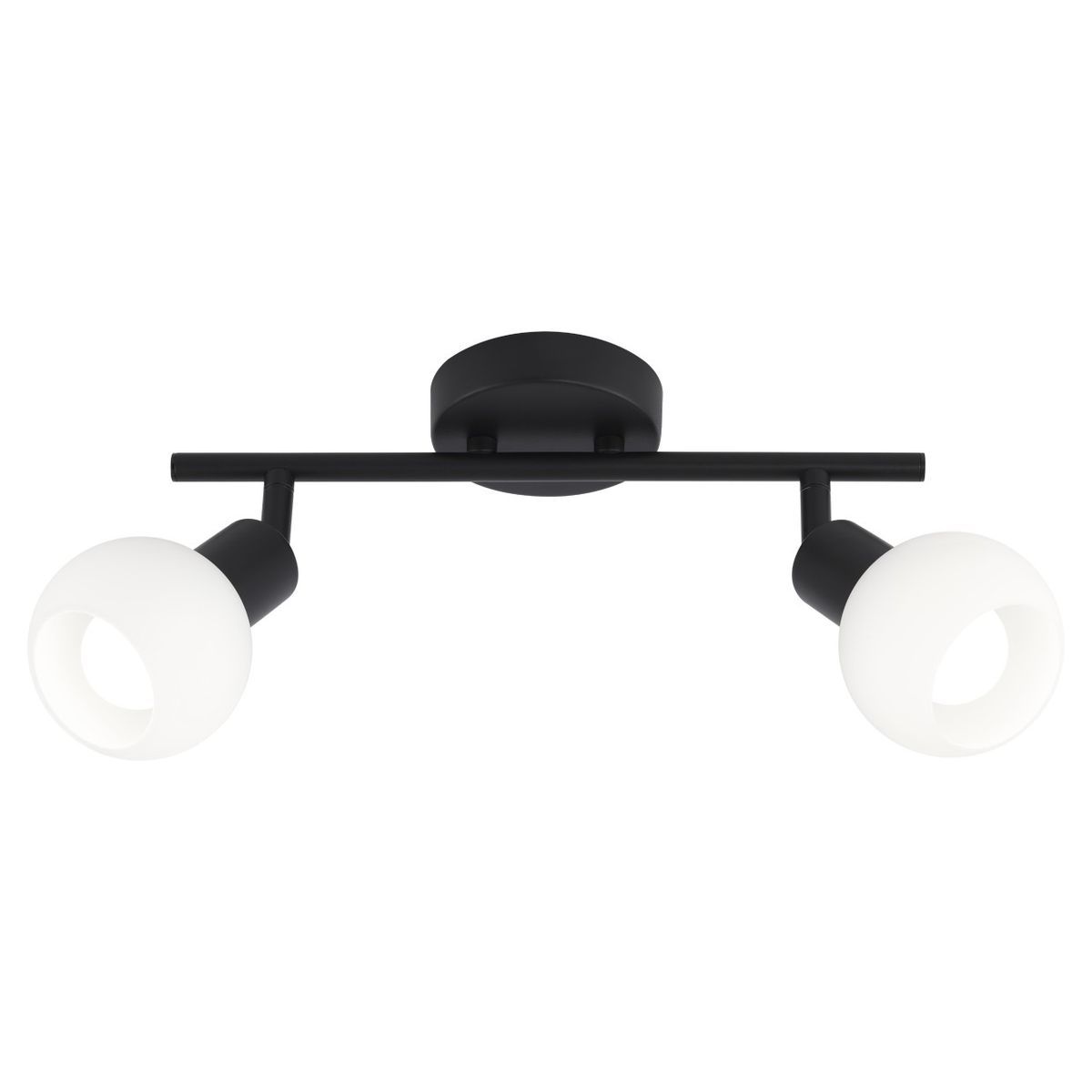 Regleta de techo 2L con acabado negro mate y pantallas opalinas blancas. Ideal para iluminar espacios como baños, cocinas o pasillos. Fabricada en metal y vidrio, ofrece un diseño moderno y funcional. Incluye dos focos E-14 de 40W cada uno. Perfecta para ambientes con estilo contemporáneo.