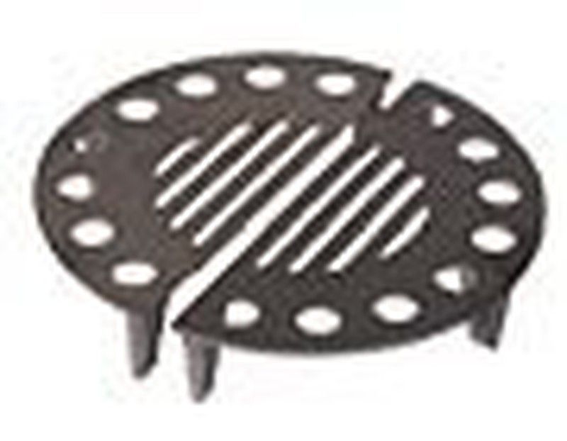 Rejilla estufa Theca de metal negro, ideal para ventilación y calefacción. Diseño ovalado con perforaciones y ranuras diagonales para una óptima circulación de aire. Incluye patas para elevación y corte flexible para adaptarse a diferentes conductos. Resistente y funcional para sistemas de ventilación en hogar y obra.