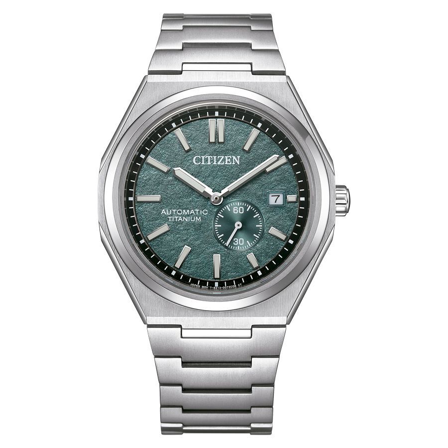 Reloj Citizen Hombre NJ0180-80X de titanio automático, con esfera verde y correa de titanio resistente. Diseño elegante y robusto, ideal para hombres que buscan estilo y durabilidad. Caja octogonal, cristal de zafiro antirreflejante y movimiento automático de precisión. Perfecto para uso diario o ocasiones formales.