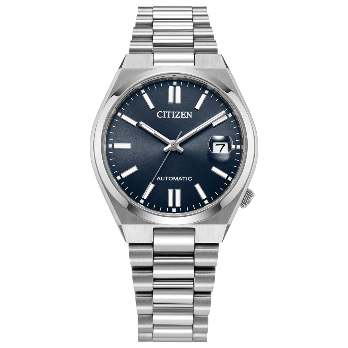 Reloj Citizen Mujer NJ0200-50M, elegante y sofisticado, con esfera azul y correa de acero inoxidable. Automático, con indicador de fecha y diseño clásico. Ideal para mujeres que buscan estilo y precisión en su día a día. Con acabado plateado y detalles pulidos, combina perfectamente con cualquier atuendo formal o casual.