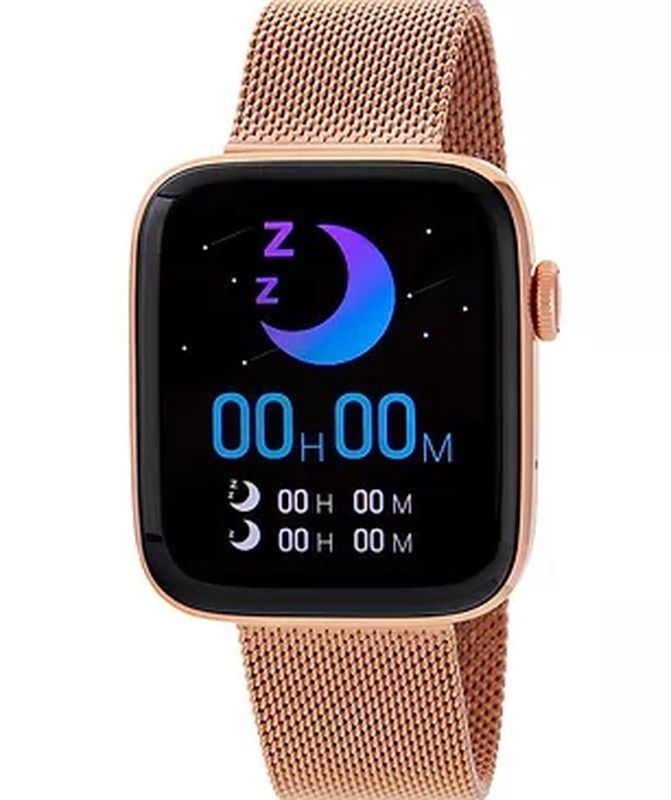 Reloj inteligente Marea B58010/7 en acero rosa, con correa de malla metálica y pantalla táctil que muestra funciones de sueño con diseño de luna creciente. Ideal para adultos que buscan estilo y tecnología en un accesorio elegante y funcional. Perfecto para el día a día y actividades diarias.