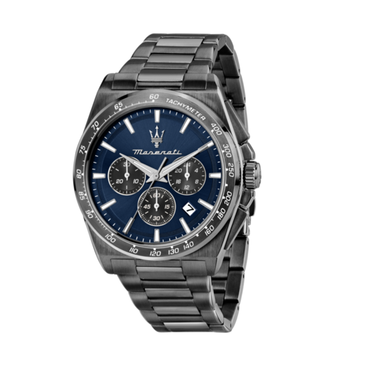 Reloj Maserati Hombre R8873652015, cronógrafo analógico con esfera azul y correa de acero inoxidable. Diseño elegante y deportivo, ideal para hombres que buscan estilo y precisión. Con escala táctil en el bisel y subesferas negras, este reloj combina funcionalidad y sofisticación. Perfecto para uso diario o ocasiones especiales.