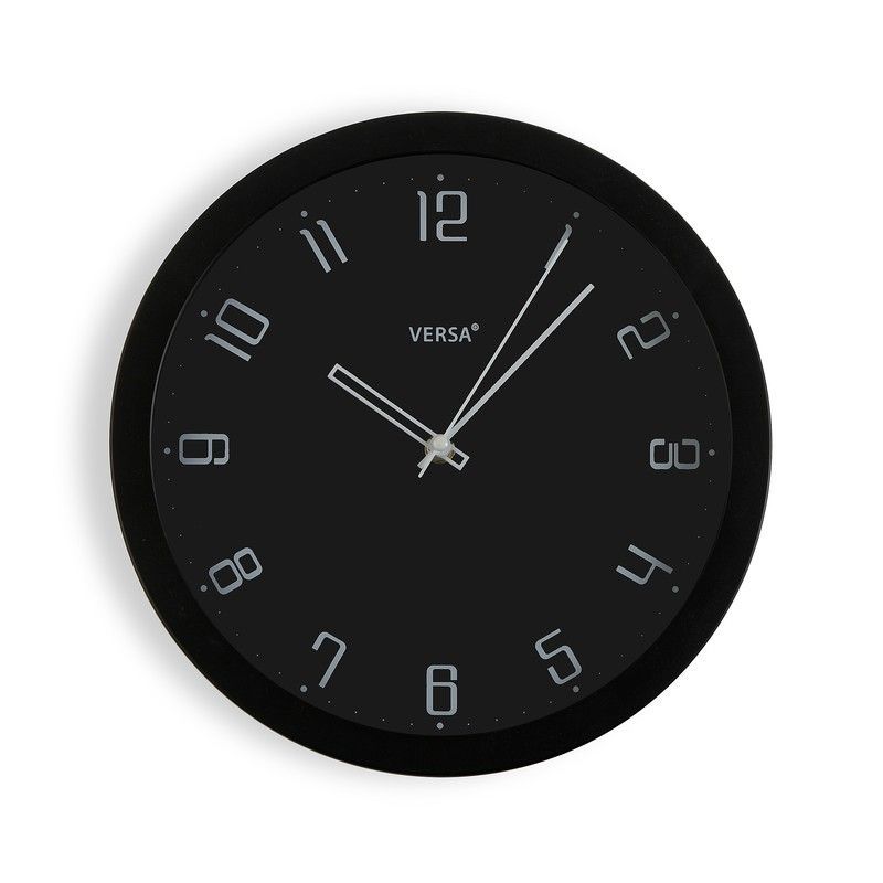 Reloj de pared decorativo negro minimalista de 30 cm, ideal para espacios modernos. Con esfera negra, números blancos y manecillas plateadas, aporta estilo y funcionalidad a tu hogar. Fabricado con materiales de calidad como metal y vidrio, perfecto para salones, cocinas o oficinas. Un toque elegante y contemporáneo para tu decoración.