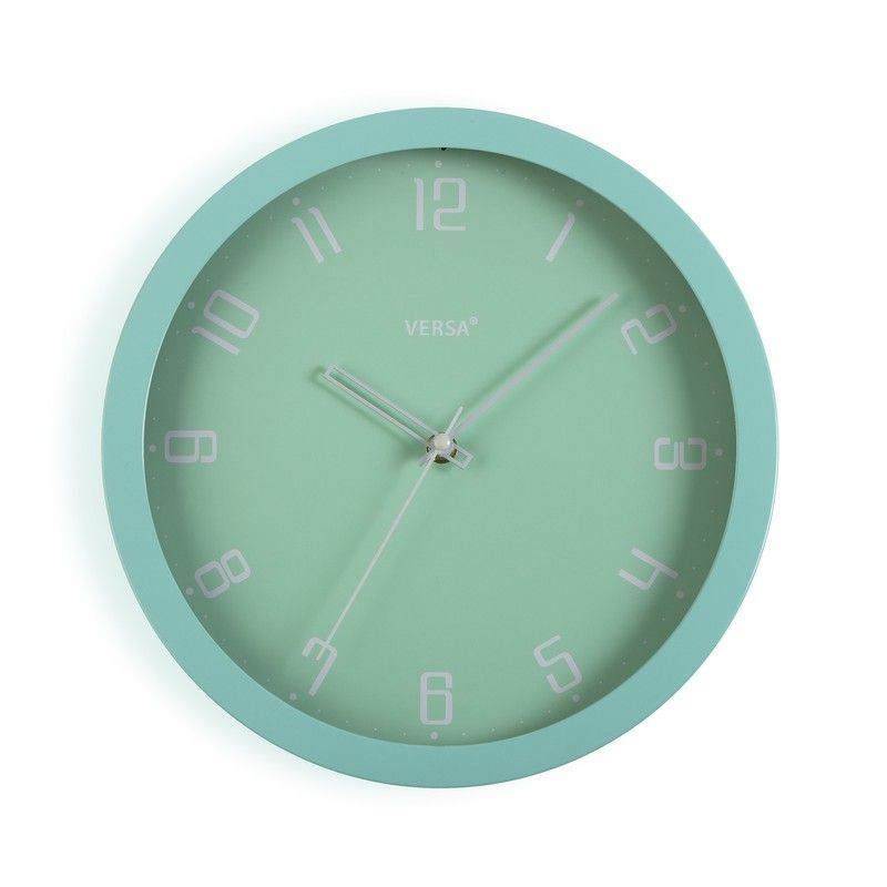 Reloj de pared minimalista de 30 cm con esfera turquesa y números blancos, ideal para decorar espacios modernos. Fabricado con marco de metal y cristal transparente, ofrece una estética limpia y elegante. Perfecto para salones, cocinas o oficinas que buscan un toque de estilo escandinavo. Fácil de instalar y de mantener.