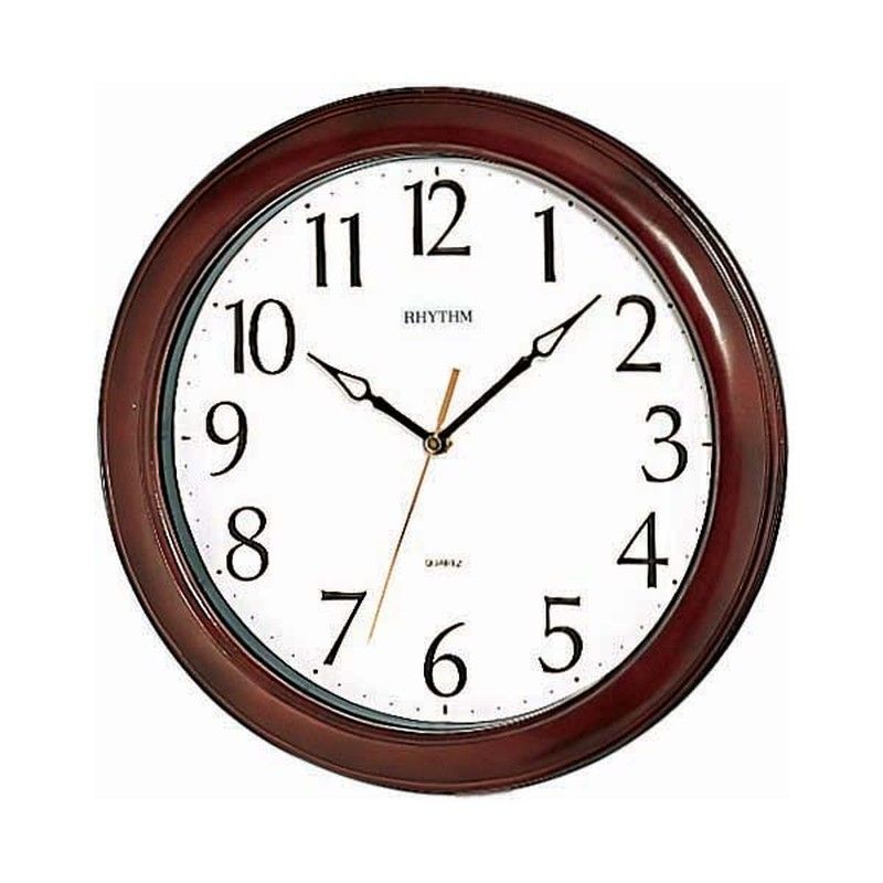 Reloj de pared Rhythm CMG270NR06 con diseño redondo y marco de madera en tono marrón oscuro. Esfera blanca con números arábigos negros y manecillas elegantes. Ideal para decorar salas, comedor o oficinas con estilo clásico. Fabricado con materiales de calidad para una durabilidad óptima. Perfecto para quienes buscan funcionalidad y buen gusto en su