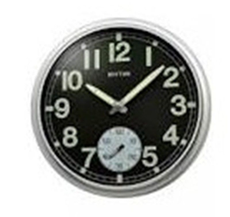 Reloj de pared Rhythm CMG774BR19 con diseño elegante y clásico. Esfera negra con números blancos y marco plateado, ideal para decorar salones, oficinas o comedores. Fabricado con materiales de calidad como metal y vidrio, ofrece precisión y estilo. Perfecto para quienes buscan funcionalidad y diseño en un solo producto.