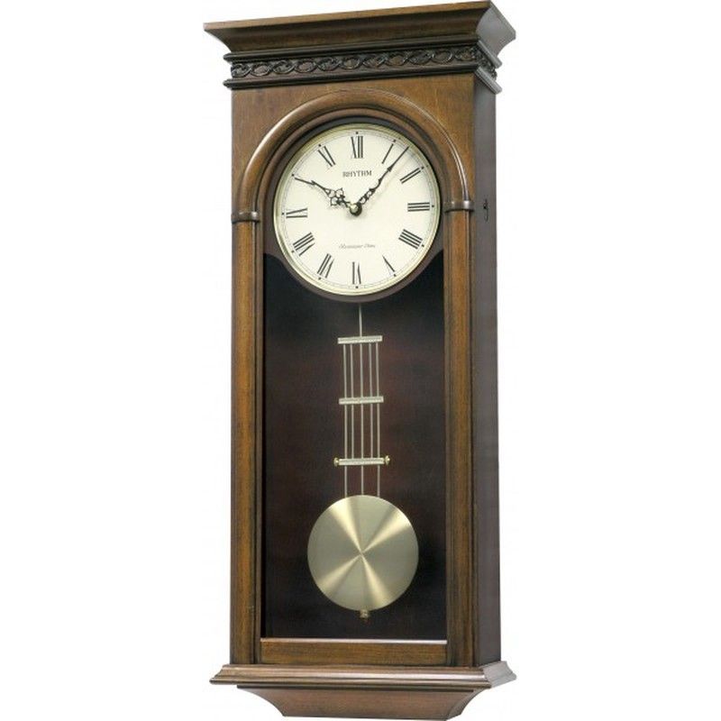 Reloj Rhythm De Pared CMJ529NR06 Clásico Marrón Pendulo