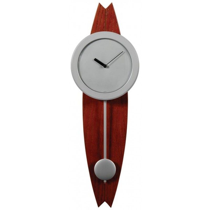 Reloj de pared Rhythm CMP502-R06 con diseño decorativo y elegante, ideal para espacios modernos. Fabricado con madera de tono marrón y detalles metálicos plateados, incluye péndulo visible que añade movimiento y estilo. Perfecto para salones, comedor o oficinas, combina funcionalidad con diseño contemporáneo.