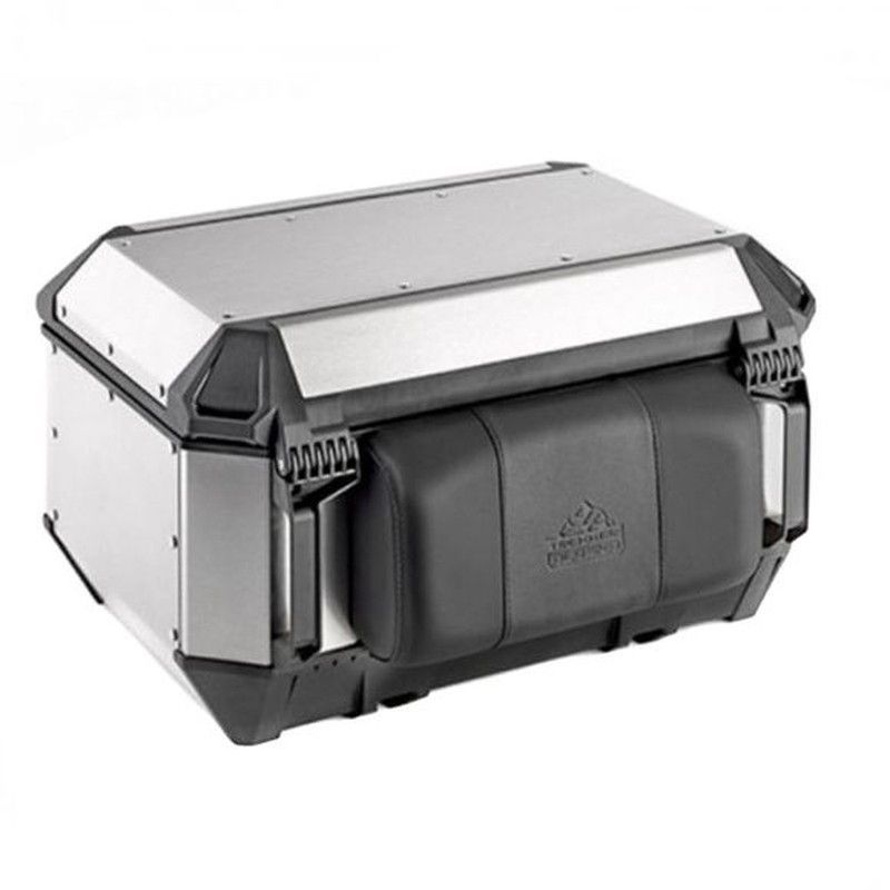 Respaldo TREKKER ALASKA de 56 Ltr. para motocicletas, fabricado en acero inoxidable y plástico resistente. Diseño robusto con asas laterales y protección angular para mayor durabilidad. Ideal para viajes largos y uso diario, ofrece almacenamiento seguro y resistente a la intemperie. Perfecto para motociclistas que buscan calidad y funcionalidad.