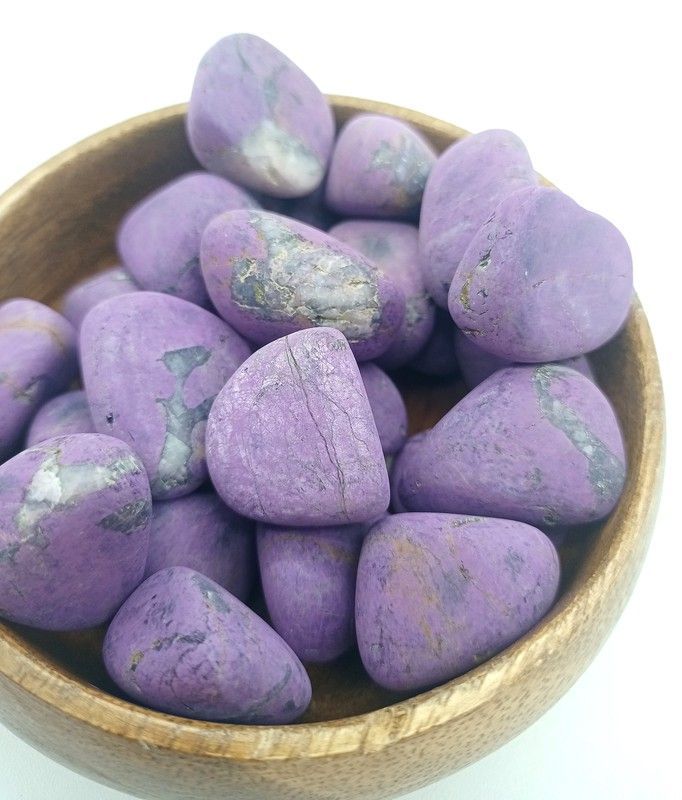 Rodados de purpurita artificial en tono morado intenso con vetas grises, ideales para manualidades, decoración o como piedras de energía. Su acabado pulido y forma redondeada las hace perfectas para proyectos creativos, joyería o decoración de hogar. Calidad duradera y apariencia natural.