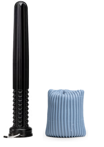Rolly ayuda pone medias + cono: herramienta práctica para colocar medias o calcetines con facilidad. Ideal para adultos, especialmente personas con movilidad reducida. Cono negro de plástico con textura antideslizante y calcetín azul claro de textil suave. Solución cómoda y eficiente para el cuidado personal diario.