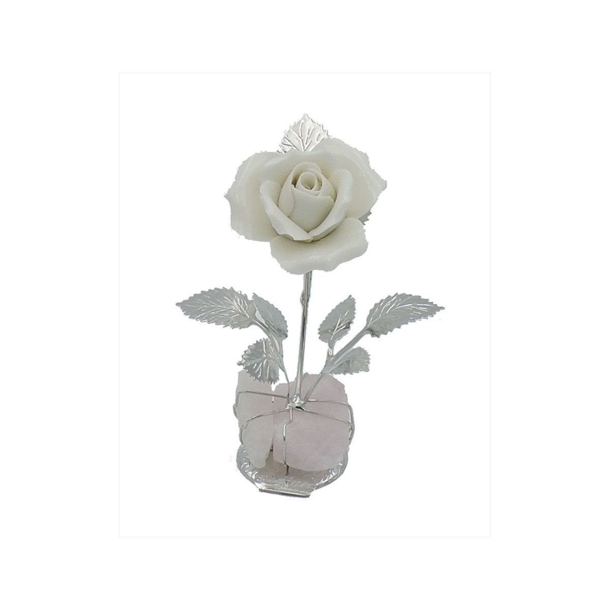 Rosa Latón 13cm NF0050D-B Blanca Base Mineral Rosada