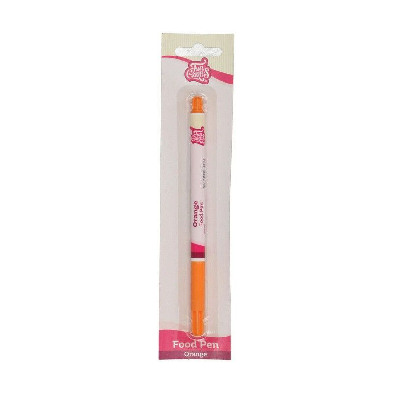 Rotulador comestible naranja Funcakes ideal para decorar pasteles, cupcakes y galletas. Perfecto para añadir detalles personalizados y mensajes creativos a tus creaciones de repostería. Fácil de usar y seguro para consumir. Incluye empaque protector tipo blister. Ideal para pasteleros y amantes de la repostería.