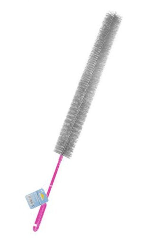 Plumero Rozenbal para limpiar radiadores con cerdas de acero inoxidable y mango rosa resistente. Ideal para eliminar polvo y suciedad de difícil acceso en radiadores, rejillas y ventilaciones. Diseño ergonómico con gancho para colgar y fácil almacenamiento. Perfecto para mantenimiento del hogar y limpieza profunda.