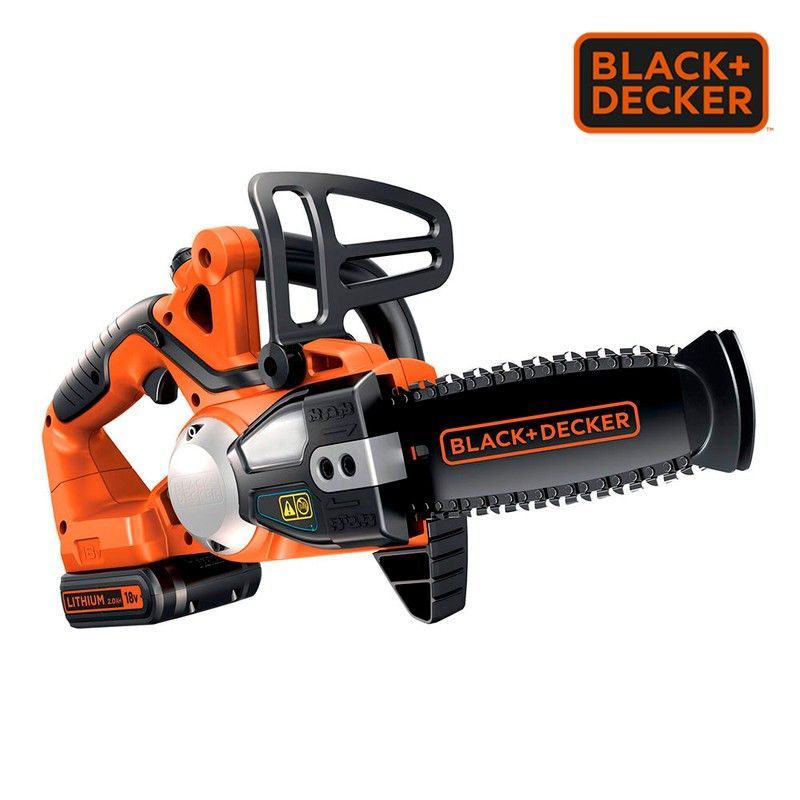 Motosierra inalámbrica Black+Decker GKC1820L20-QW de 18V con batería de litio 2Ah, ideal para tareas de jardinería. Diseño robusto en naranja y negro con cuchilla dentada y agarre antideslizante. Fácil de usar y portátil, perfecta para cortar ramas y madera en espacios exteriores. Alta potencia y durabilidad para usuarios que buscan eficiencia en h