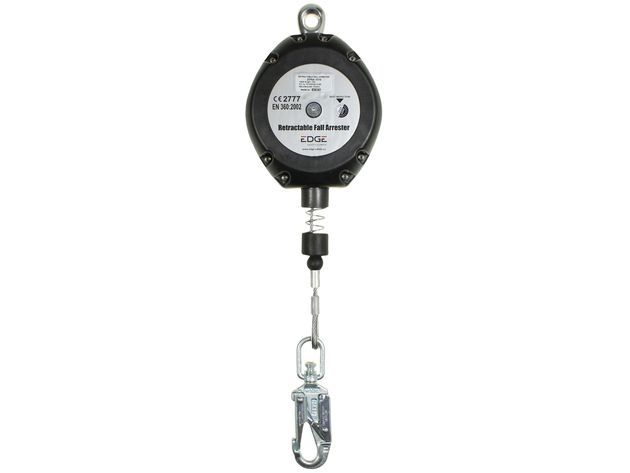 Dispositivo de protección retráctil Safety Jogger EDGE 1020 VERT, ideal para escalada y trabajos en altura. Fabricado con acero inoxidable y plástico resistente, ofrece seguridad confiable con su gancho de acero y mecanismo retráctil. Perfecto para profesionales y entusiastas de la escalada que buscan protección eficaz y duradera.