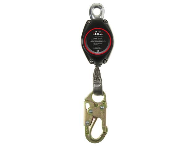 Dispositivo de protección retráctil Safety Jogger EDGE 102WD 2M SNAP, ideal para escalada y trabajos en altura. Fabricado en acero inoxidable y plástico resistente, ofrece seguridad y durabilidad. Incluye gancho de cierre automático y carcasa robusta con etiqueta de identificación. Perfecto para profesionales y entusiastas de la escalada que buscan