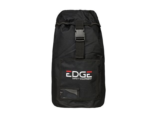 Mochila Safety Jogger EDGE BACKPACK MEDIUM en color negro, ideal para escaladores que necesitan transportar su equipo de protección de forma segura y organizada. Fabricada en poliéster resistente, cuenta con cierre de correa y hebilla, bolsillo frontal con cremallera y logo distintivo. Perfecta para actividades al aire libre y escalada en roca.