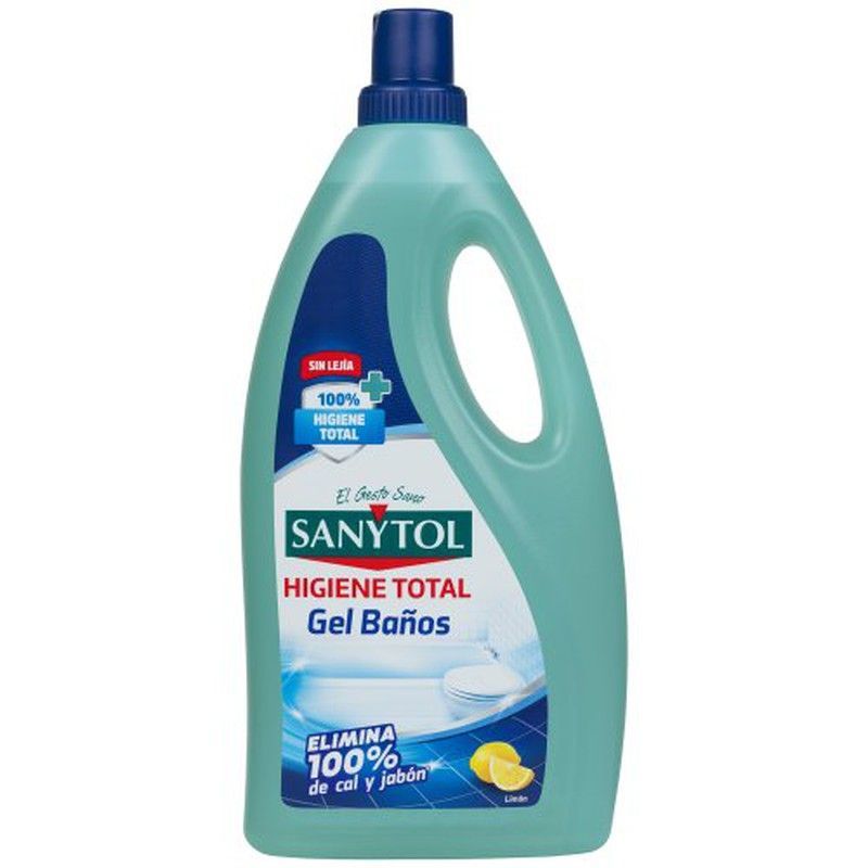 Sanytol Gel Baños 1200 ml: gel desinfectante para higiene total en baños. Elimina 100% de cal y jabón sin lejía. Fórmula eficaz y segura para superficies de baño. Ideal para mantener tu baño limpio, brillante y con aroma fresco. Uso diario recomendado.