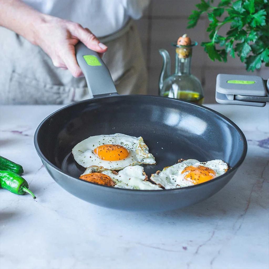 Sartén Cerámica Bra Life de 22 cm, ideal para saltear y cocinar de forma saludable. Con acabado antiadherente y mango ergonómico en gris con detalles verdes, ofrece facilidad de uso y limpieza. Perfecta para preparar huevos, verduras o carnes sin necesidad de aceite adicional. Diseño moderno y funcional para tu cocina diaria.