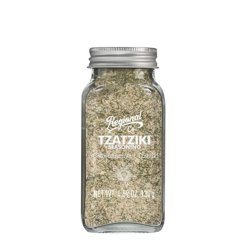 Sazonador Tzatziki de Regional Co. en frasco de vidrio de 130 g, ideal para realzar platos griegos, ensaladas, carnes y verduras. Con mezcla de hierbas y especias auténticas, aporta sabor fresco y mediterráneo. Perfecto para cocinar en casa o para amantes de la gastronomía internacional.
