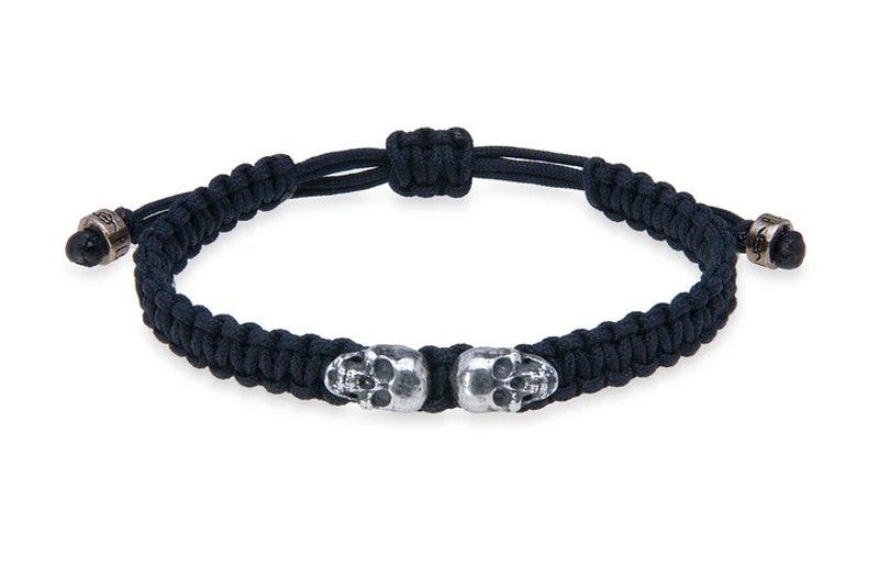 | Nombre | SB123N Pulsera PLATA DE PALO unisex autoajustable de nylon negro con dos calaveras de plata 925 colección Nívaro |