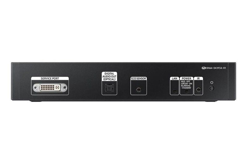 Reproductor UHD Sbb-Ssn Sssp 6.0 sin ranura para tarjeta, diseñado para sistemas de audiovisual profesional. Conectividad completa: puerto de servicio, salida de audio digital óptica, LAN, sensor ECO y receptor IR. Ideal para instalaciones comerciales o de entretenimiento. Fabricado en plástico y metal, con acabado negro mate y diseño funcional. In