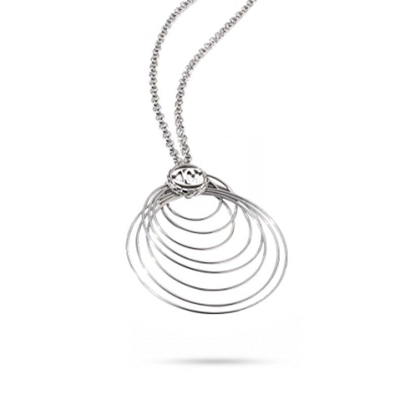 Colgante CAVALLI SCEQ02 con diseño de varios círculos concéntricos en acabado plateado, ideal para mujeres que buscan joyería sofisticada y contemporánea. Fabricado en metal de alta calidad, con detalle central de piedra brillante y cadena fina. Perfecto para combinar con cualquier atuendo, desde looks casuales hasta vestidos de noche. Un accesorio