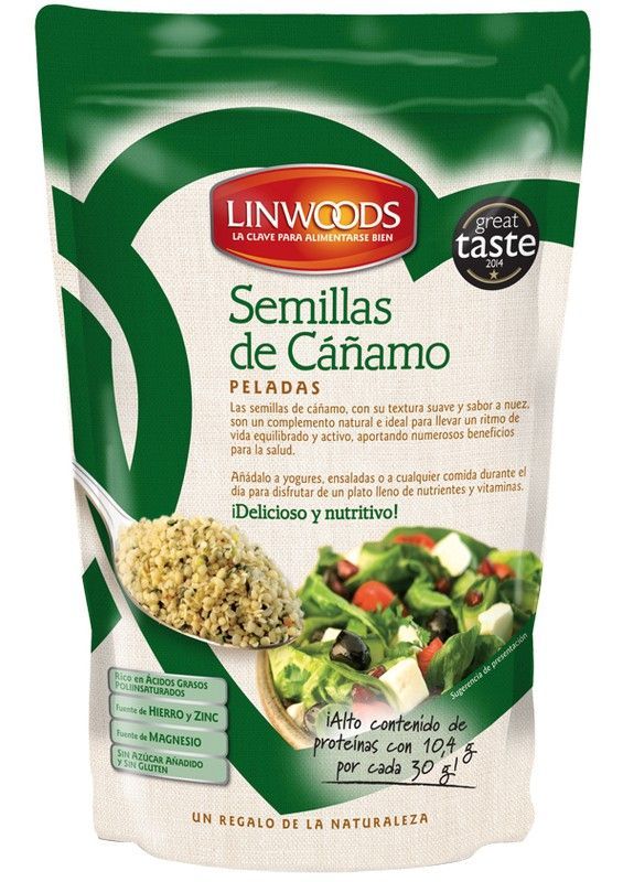 Semillas de cáñamo peladas Linwoods, un alimento natural y nutritivo ideal para enriquecer yogures, ensaladas y platos diarios. Rico en proteínas, ácidos grasos, hierro, zinc y magnesio. Sin azúcar añadida ni gluten. Un regalo de la naturaleza para una alimentación equilibrada y saludable.