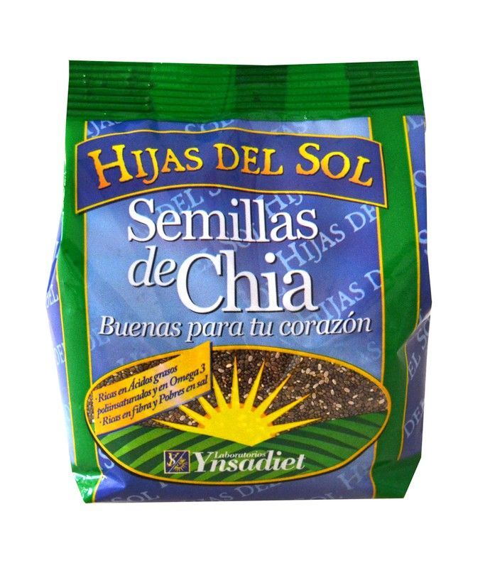 Semillas de chía Hijas del Sol, en práctico paquete de 250 gr. Ricas en ácidos grasos poliinsaturados y omega-3, ideales para tu corazón. Sin fibra y pobres en sal. Perfectas para añadir a batidos, yogures, cereales o recetas saludables. Producto de calidad de Ynsadiet, ideal para quienes buscan alimentos nutritivos y naturales.