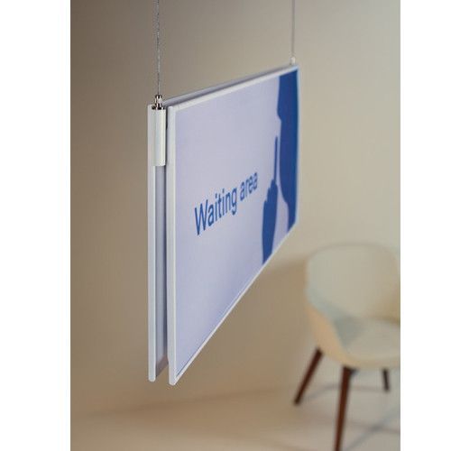 Señalización colgada Menfis de 96x21 cm, ideal para oficinas y espacios comerciales. Fabricada con marco metálico y panel de plástico, ofrece una presentación limpia y profesional. Perfecta para indicar zonas como áreas de espera, con texto claro y diseño moderno. Fácil instalación y mantenimiento. Ideal para entornos corporativos y recepciones.