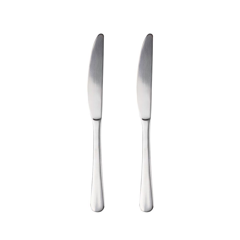 Set de 2 cuchillos de acero inoxidable reciclado con acabado brillante natural. Diseño elegante y funcional, perfecto para uso diario en comedor. Materiales de alta calidad, resistentes y duraderos. Ideal para servir y cortar alimentos con estilo y comodidad.