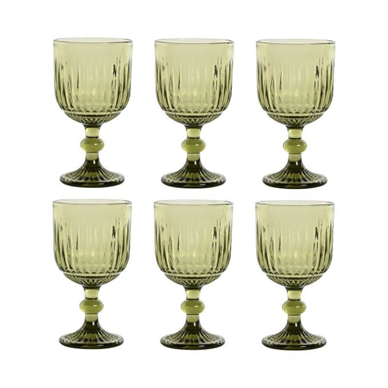 Set de 6 copas de agua, 9 x 9 x 16,5 cm, de cristal en verde | Colección Striped
