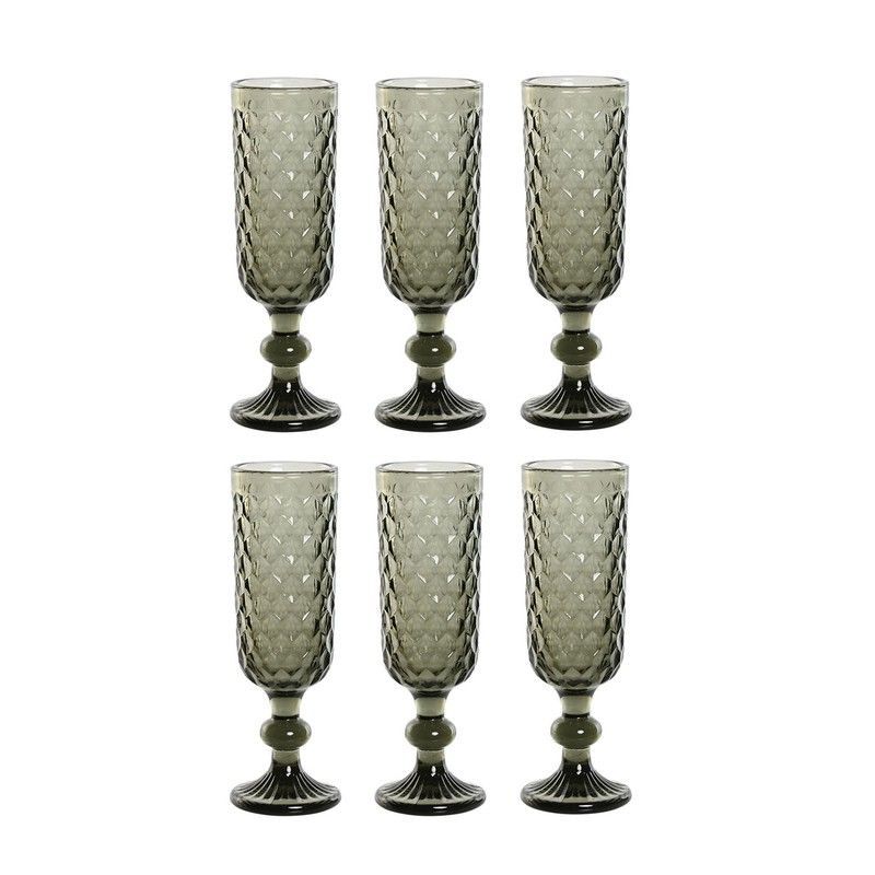Set de 6 copas de champagne de cristal en gris, 7 x 7 x 20 cm | Sea Side