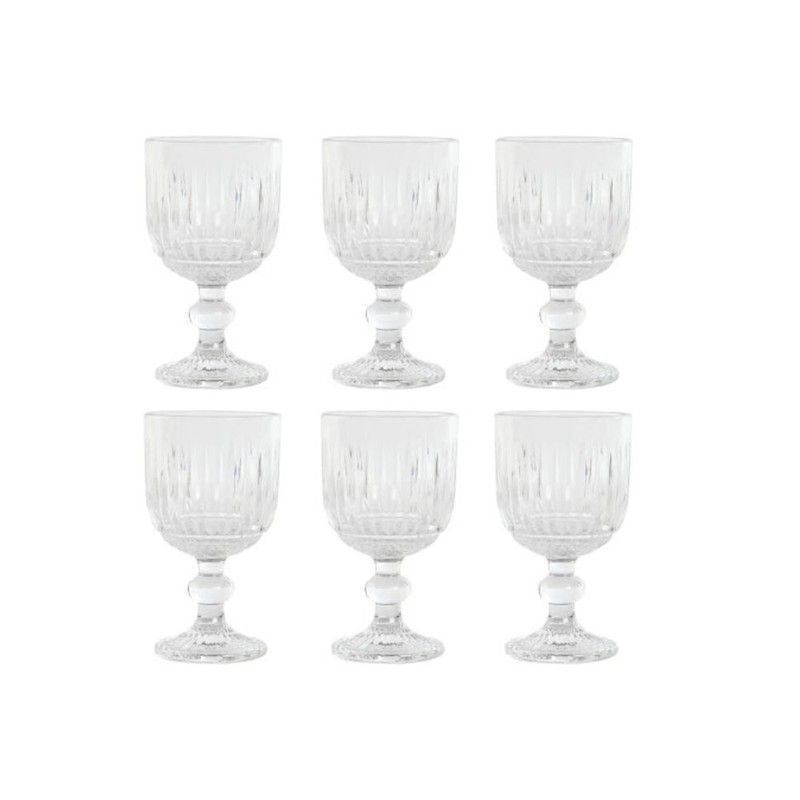 Set de 6 copas de vino de cristal transparente con elegante diseño de rayas verticales. Ideales para servir vino o cócteles en cualquier ocasión. Fabricadas en cristal de alta calidad, con base robusta y pie grueso para mayor estabilidad. Perfectas para decorar tu mesa y disfrutar de momentos especiales con estilo.