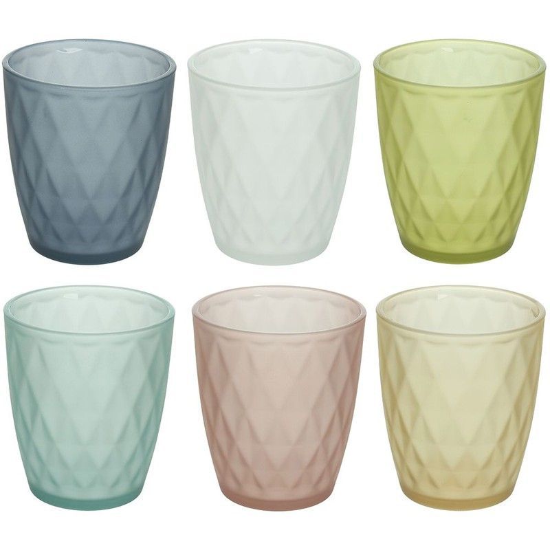 Set de 6 vasos de cristal en tonos pastel suaves, ideales para decorar tu mesa con estilo. Con diseño facetado en forma de rombos, estos vasos aportan elegancia y frescura a cualquier ocasión. Perfectos para agua, zumos o cócteles, combinan funcionalidad y diseño. Ideal para uso diario o como regalo especial.