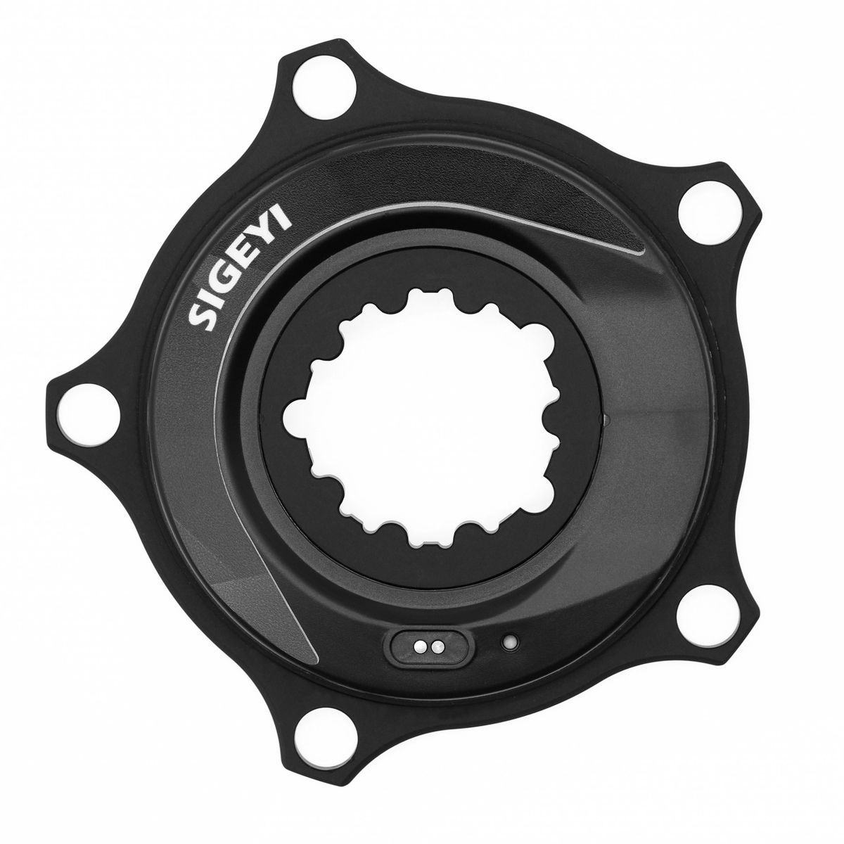 Potenciómetro Araña AXO EEWINGS ROAD 3-5-110 de SIGEYI, fabricado en metal de alta resistencia para ciclismo de carretera. Diseño negro con detalles blancos y forma dentada para una conexión segura. Ideal para ciclistas que buscan precisión y durabilidad en sus componentes de bicicleta. Compatible con sistemas de transmisión de alta gama.
