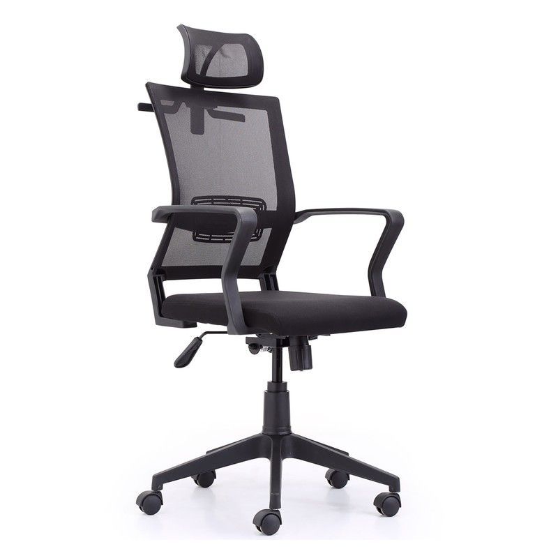 Silla de oficina Winner en color negro, con respaldo alto y tejido transpirable para mayor comodidad. Incluye reposacabezas ajustable, brazos ergonómicos y base de cinco radios con ruedas para movilidad. Ideal para profesionales que buscan ergonomía y estilo en su espacio de trabajo. Ajustable en altura para adaptarse a diferentes usuarios.