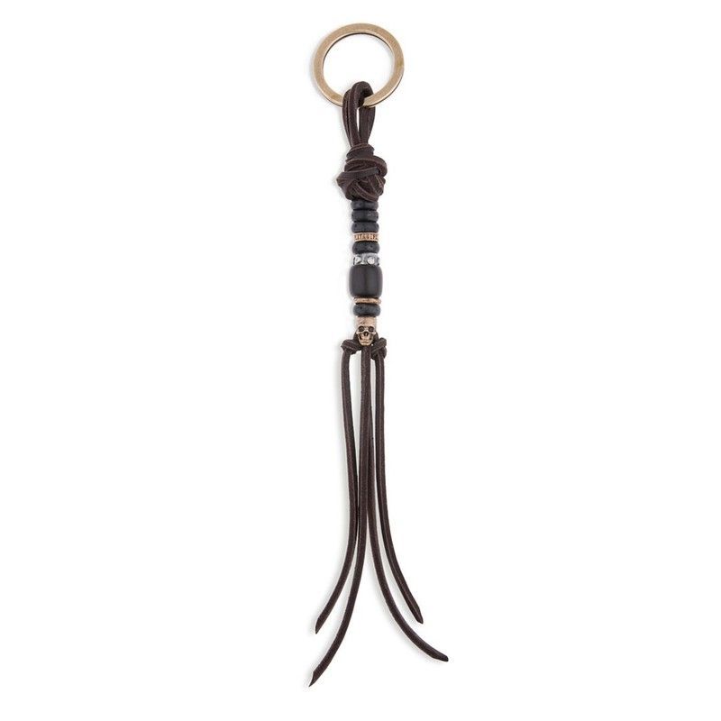 Llavero SK002X de la colección Skull, con diseño elegante y sofisticado en cuero marrón y detalles metálicos dorados. Ideal para adultos que buscan un accesorio distintivo y con estilo. Incluye anillo de metal y colgante con forma de calavera, perfecto para decorar llaves, bolsos o mochilas. Calidad premium y acabado cuidado.