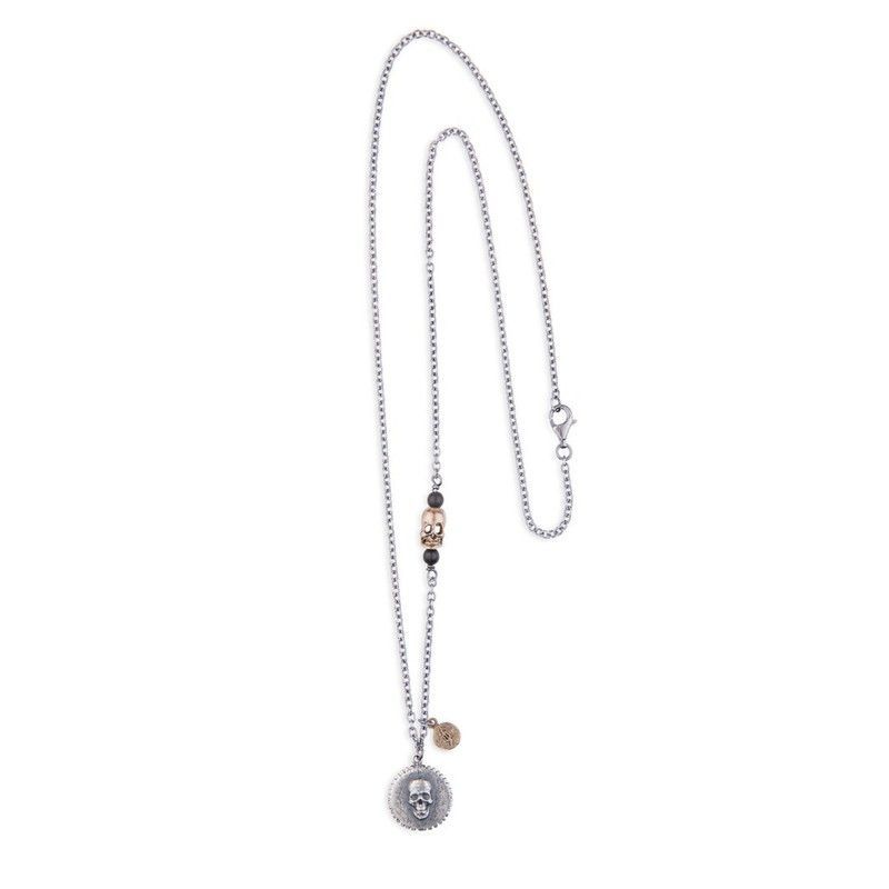 | Nombre | SN004X Collar unisex Plata de Palo Skull de plata y bolas de hematite |