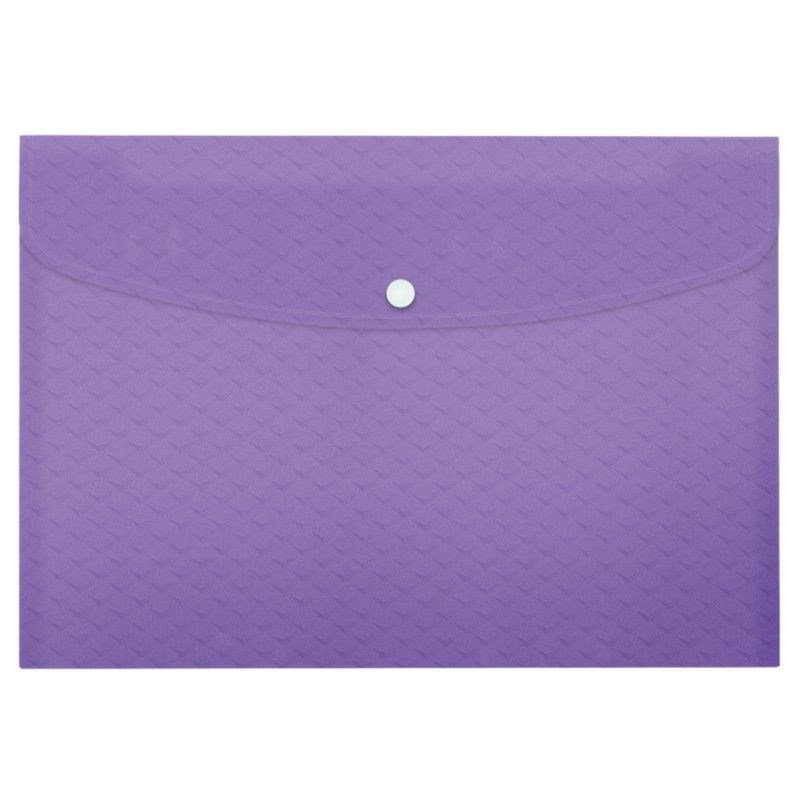Sobre PP Colour'Breeze A4+ en color lavanda, ideal para organizar documentos en oficina o estudio. Fabricado en plástico resistente con textura de rombos en relieve y cierre de presión metálica. Perfecto para mantener tus archivos seguros y ordenados. Incluye 3 unidades por paquete.