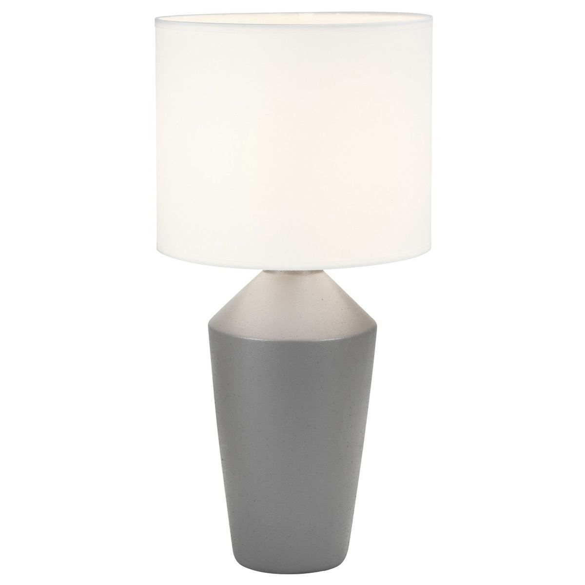 Lámpara de sobremesa Barron en color gris con pantalla blanca, ideal para decorar salones, dormitorios o despachos. Fabricada en cerámica con acabado mate, ofrece un diseño moderno y minimalista. Incluye base para bombilla E27 (no incluida). Perfecta para crear una iluminación cálida y elegante en cualquier espacio.
