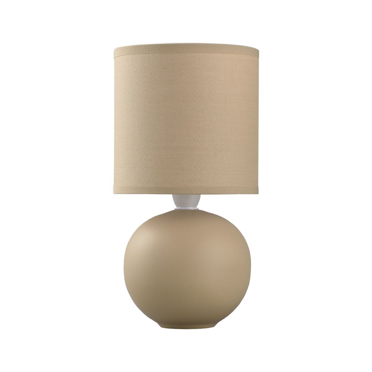Lámpara de sobremesa Caicos en tono marrón, con base esférica de cerámica y pantalla cilíndrica de textil beige. Diseño minimalista y elegante, ideal para decorar mesitas de noche, escritorios o rincones de lectura. Combina funcionalidad y estilo para espacios modernos y acogedores.