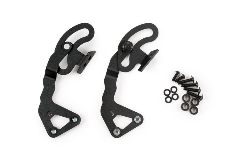 Soporte fijador para cúpula de motocicleta R1200GS (modelos 2013-2018), fabricado en metal negro resistente. Incluye tornillos y arandelas para una instalación segura y precisa. Ideal para motociclistas que buscan mejorar la protección contra el viento y la lluvia con un accesorio de alta calidad y diseño funcional.